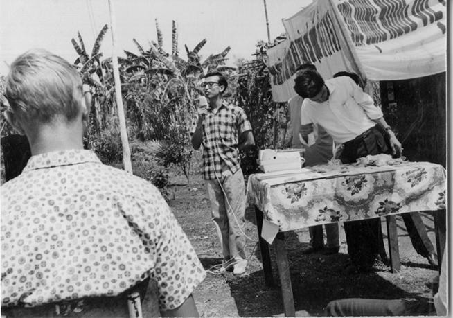 Picture is from Dar Lac Province- local officials involved with IVS and Rural Affairs working in various programs. Several screenshow personnel working in Cho Hoa program return program.