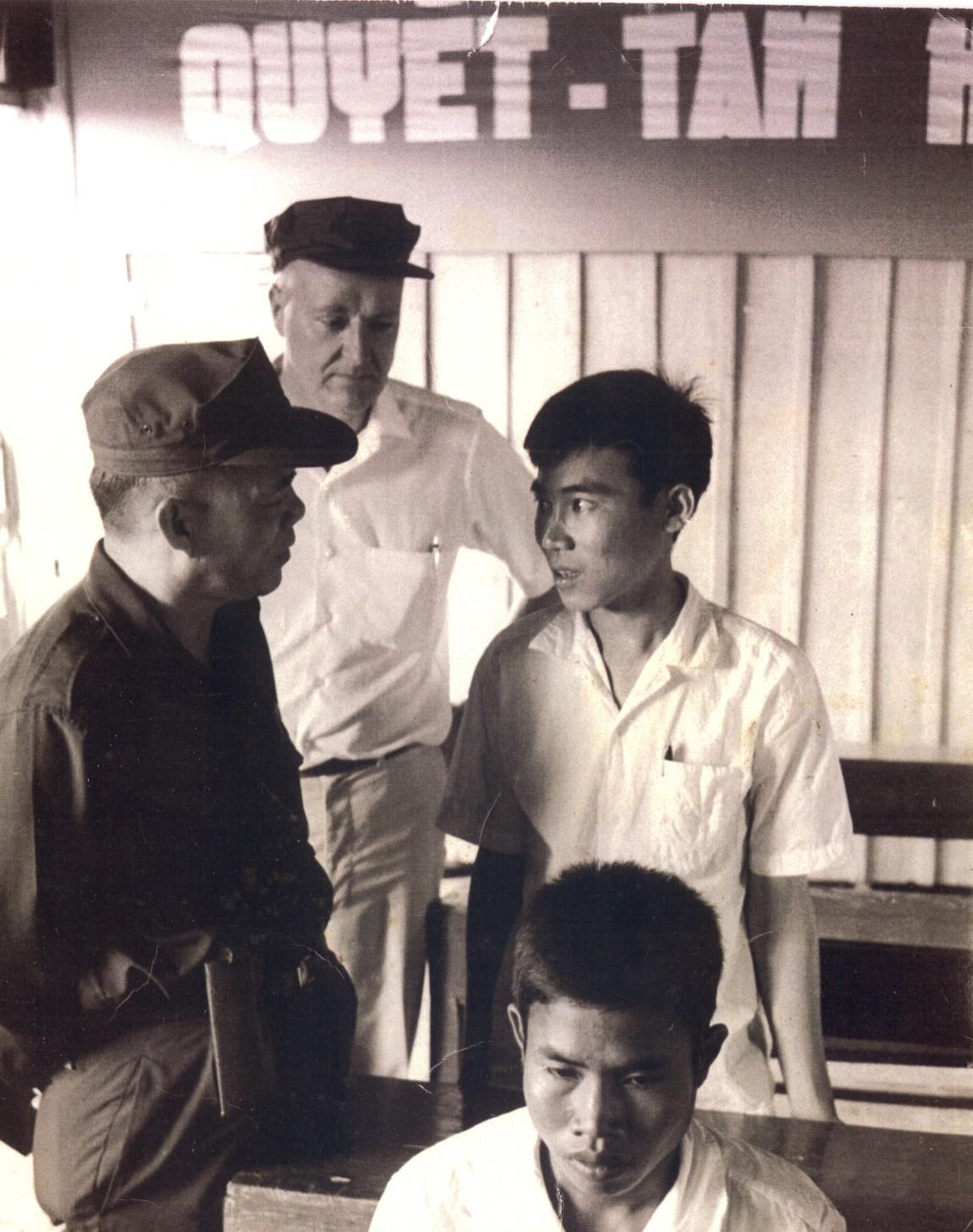 (Inkjet Print Photo) Ogden Williams and Minister for Chieu Hoi (Open Arms) An talk with a young Hoi Chanh (returnee) at the Cheiu Hoi center in Phuoc Long province. The returnee helped identify a high ranking VC political figure who had been killed recently in the province by government troops.