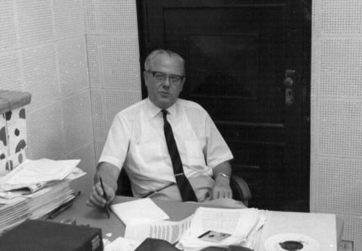 older man sitting at his desk, note on duplicate's back; Ogden, It was a pleasure knowing you and working for you. I have a feeling that if all Americans in Vietnam had your background and depth of understanding, we might be able to end the war here someday to the advantage of the US and the RVN. I will see you in Washington. And thanks for all your many kindness. Monta L Osborne.
