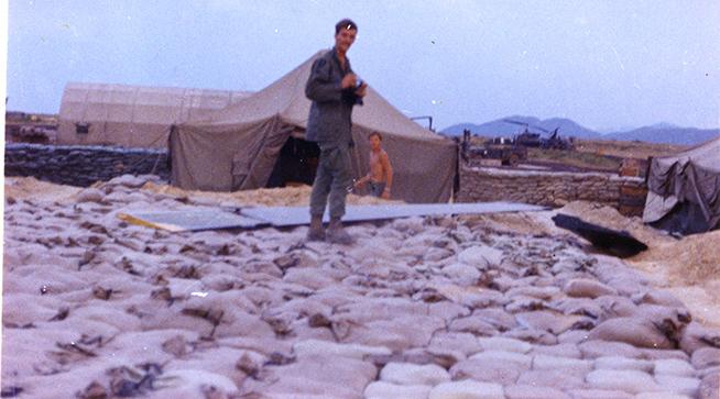 Photo of 1st Sergeant Pearl Achley and Mike Vickroy at LZ Sally - Photocopy