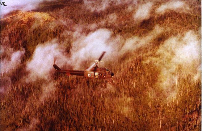 photograph, SC639275 (from U.S. National Archives) - Aerial view of wrecked UH-1D helicopter from the 269th Aviation Battalion