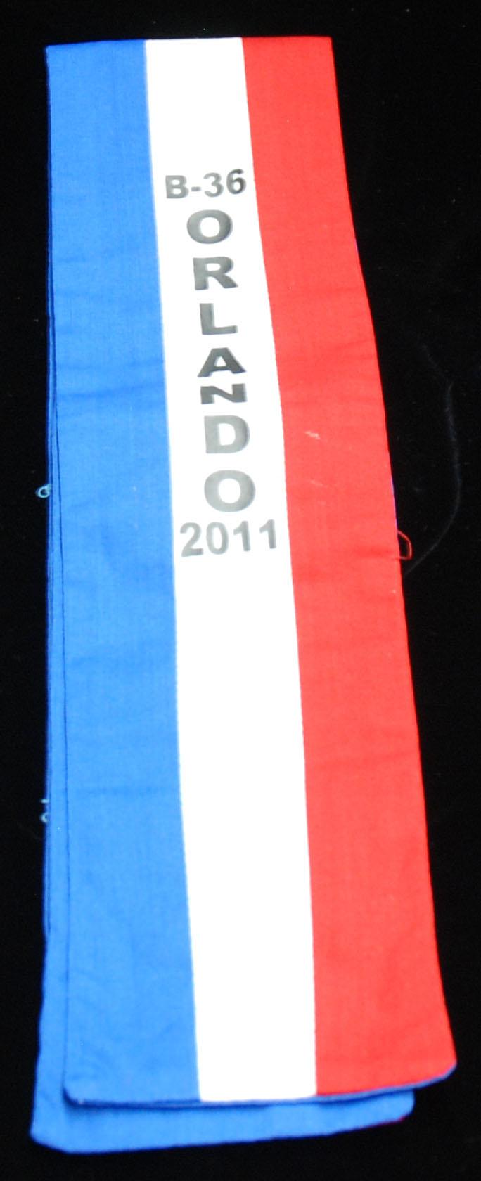Red, White and Blue Scarf with B-36 Orlando 2011 Printed On It