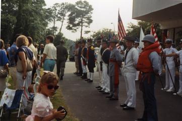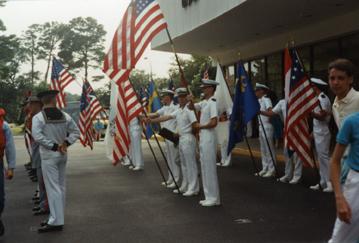 Soldiers holding flags at the Seawolf Reunion.
