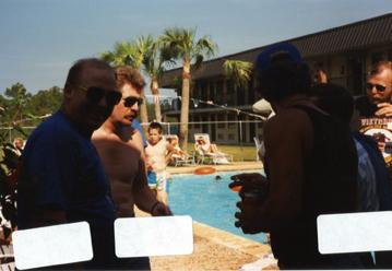 Men by the pool at the Seawolf Association Reunion.