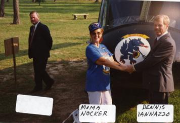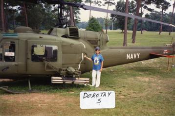Dorothy S. in front of a U.S. Navy helicopter.