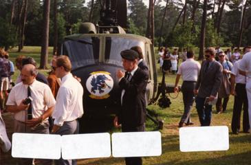 Three men in front of a helicopter at the Seawolf Reunion.