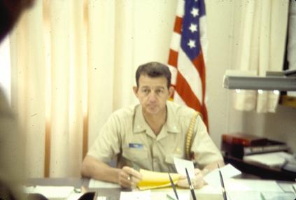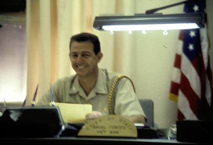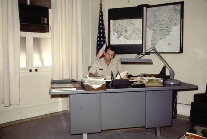 Admiral Tidd, Chief of Staff, at his desk at the Commander of Naval Forces in Vietnam compound in Saigon.
