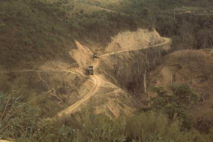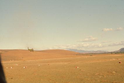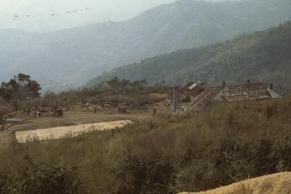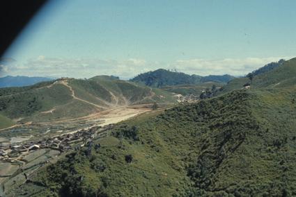 Children unloading back of a station; at 1:51, Phi-Truong Gia-Nghia; sand-bagged bunkers and a hill-top air strip.