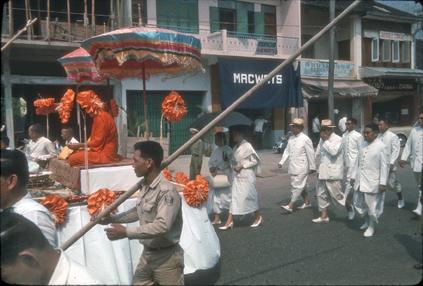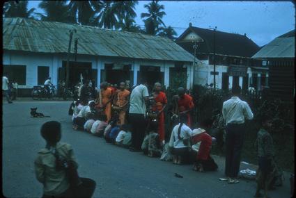 Monks getting rice.
