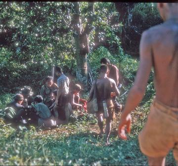 Hunters dividing up wild pig they recently shot - south of L.P.