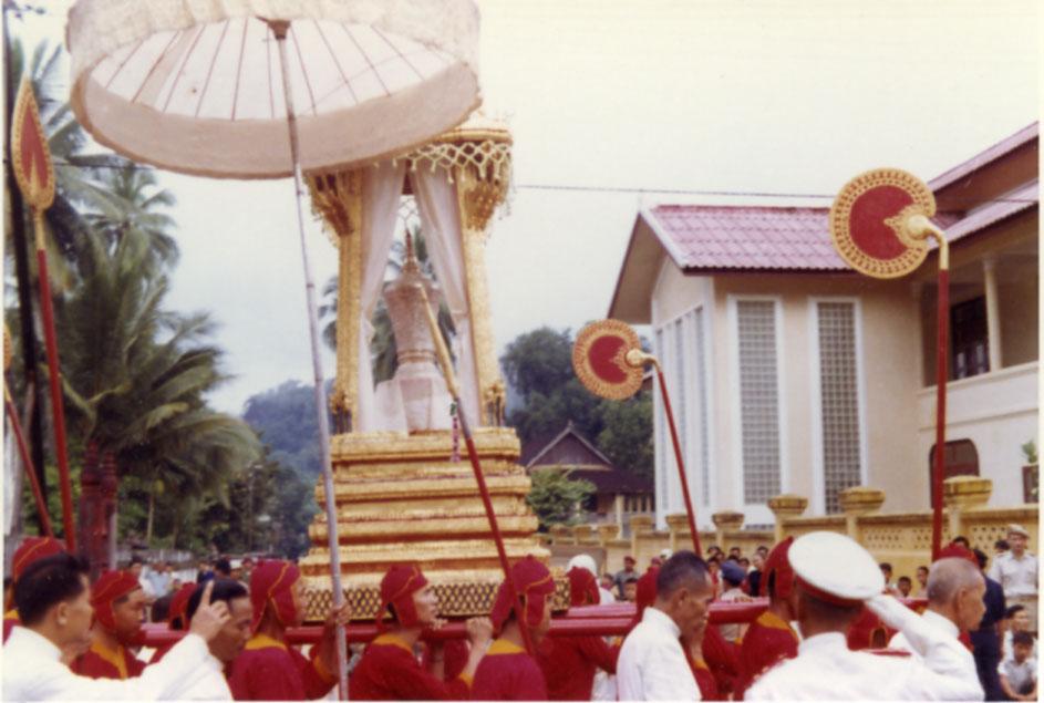 Urn containing King's ashes passing in front of Palace.