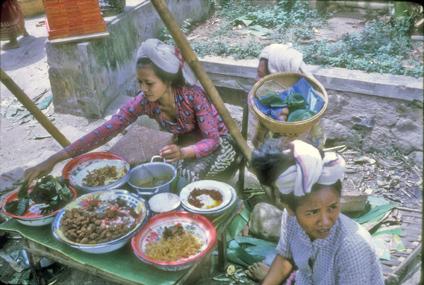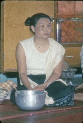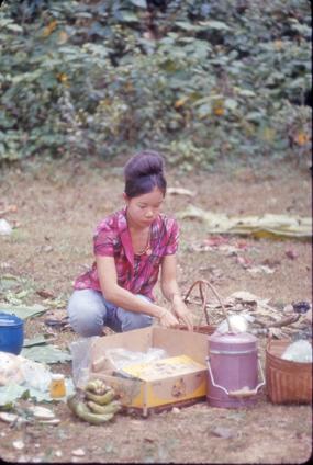 Offering rice to monk, That Luang, Vientiane, Laos.