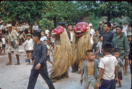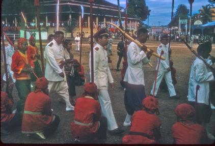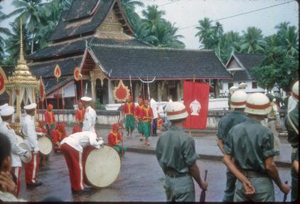 Procession in front of King- moved bones of former King, Zieng Thang. Laos.