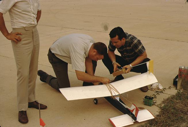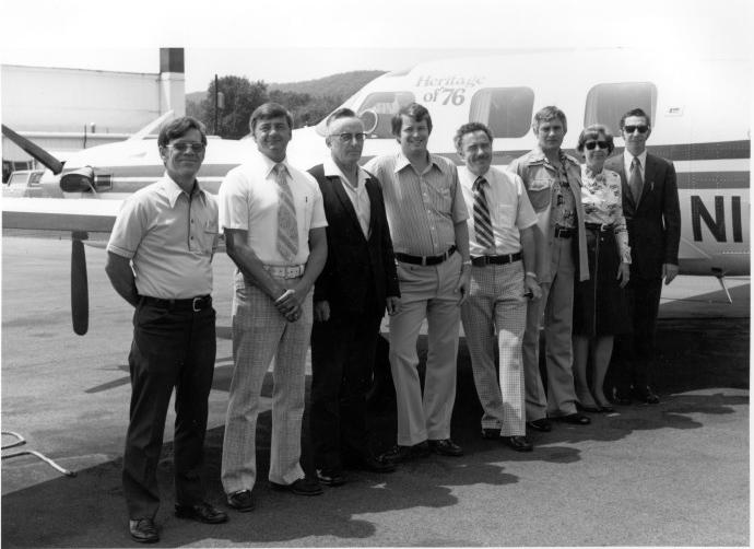 Cheyenne Pilot Transition School; (left to right) Don R. Lilly, Mountaineer Seeding; Marland Johnson, Puffer-Sweiven, Inc.; William Nikkel, Aircraft Ferrying; Keith Weems, Piper Southwest, Inc. (CORPAC S.W.); Ken E. Hoffman, Combs Gates CORPAC; Allen E. Cates, Gulf Cost Pre-Mix Mud Services, Inc.; Alice Fuchs, Instructor PAC; Donald Bundy, Instructor PAC