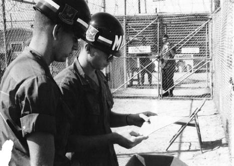 SGT Patrick F. Stein, stands in the guard tower of detainee hospital compound in Long Binh.