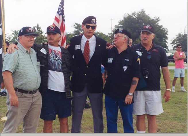 July 1999 - Memorial Ceremony for Fallen Comrades Ft. Bragg, NC (left to right) Dean Barker, Ron Lesley, Worth Bolton, Skip Resch, John Rotundo