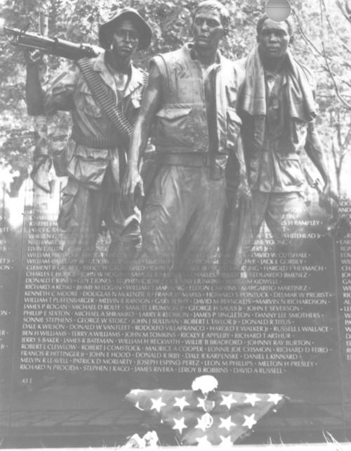The 'Three Servicemen Statue' which adjoins the Vietnam Veterans Memorial Wall in Washington, D.C.