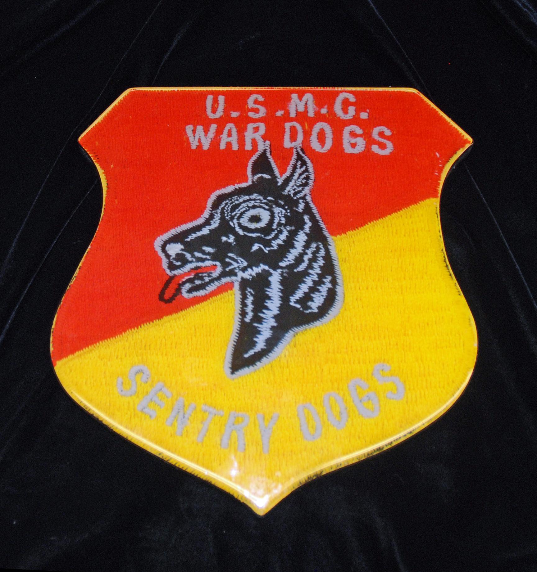 USMC Waw Dogs Ssentry dog patch plaque incased in plastic.