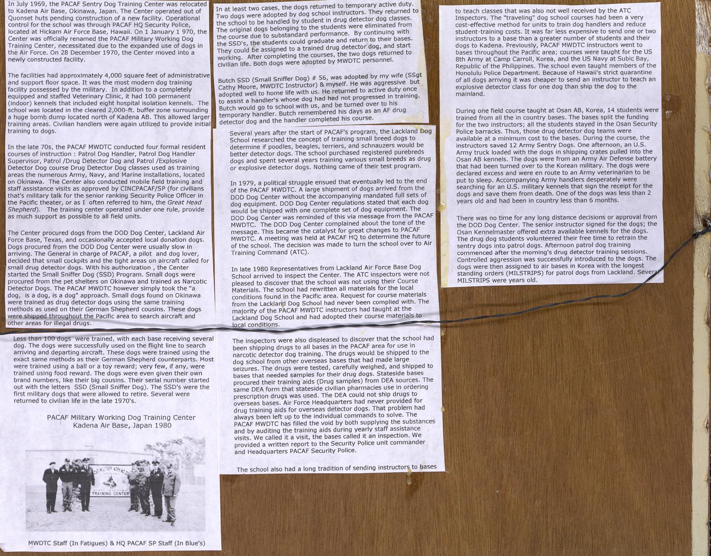 Banner from the PACAF Military Dog Center at Kadena AFB, Okinawa, July.