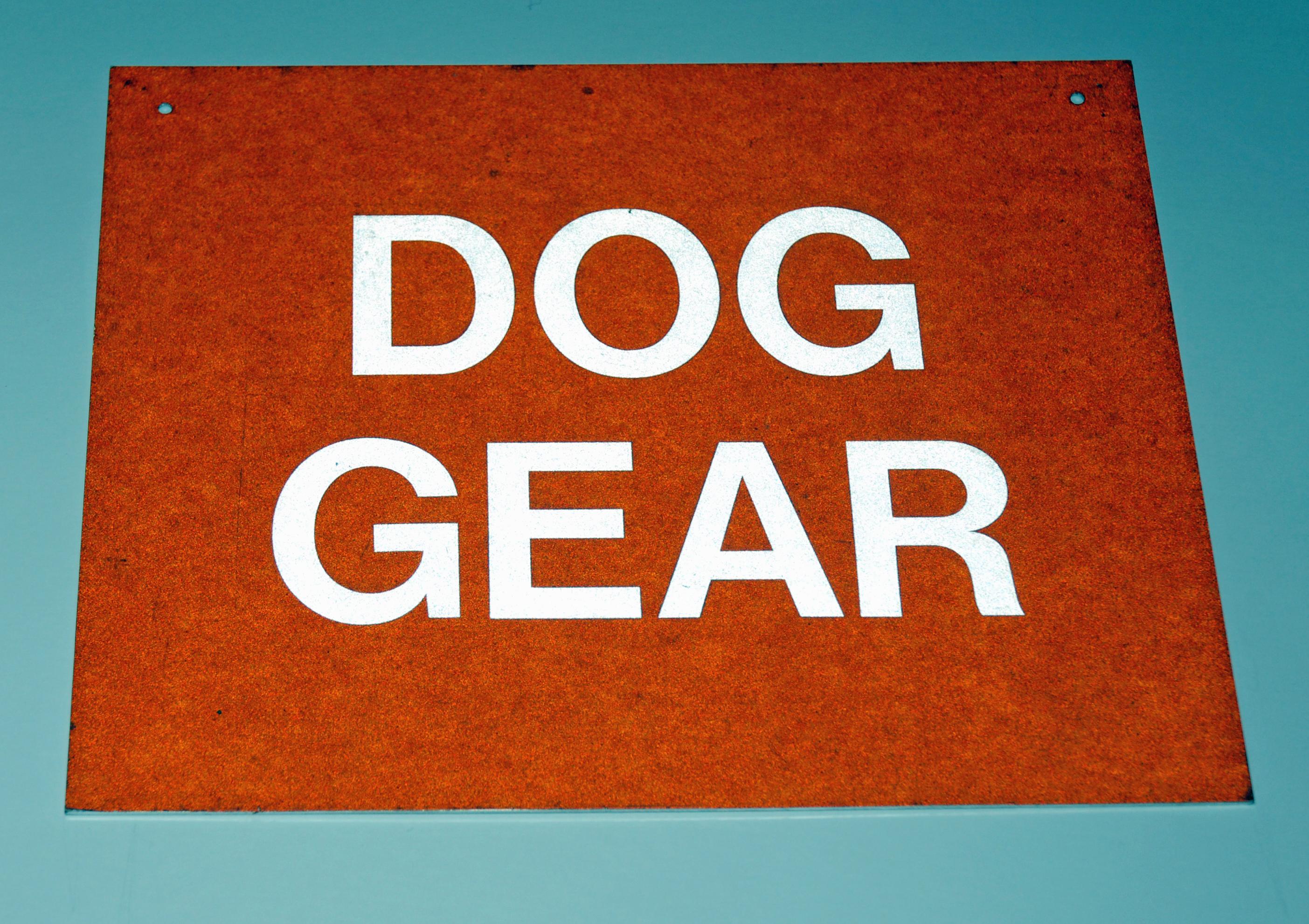 'Dog Gear' storage sign with white font from Dyess AFB, Abilene, Texas 1971