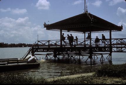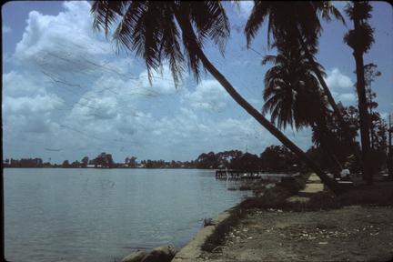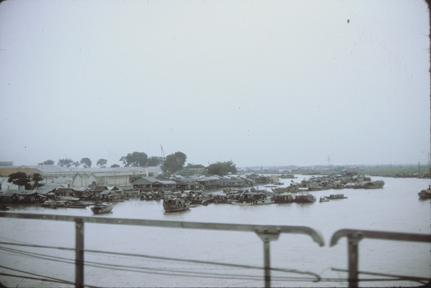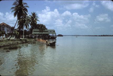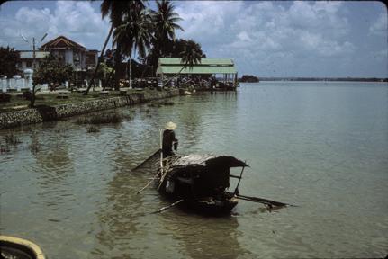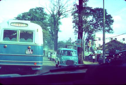 Beginning of reel is very dark. Camera pans over city, zooming in on the Hotel New Korea. Exterior of temple, fountain. More traffic.