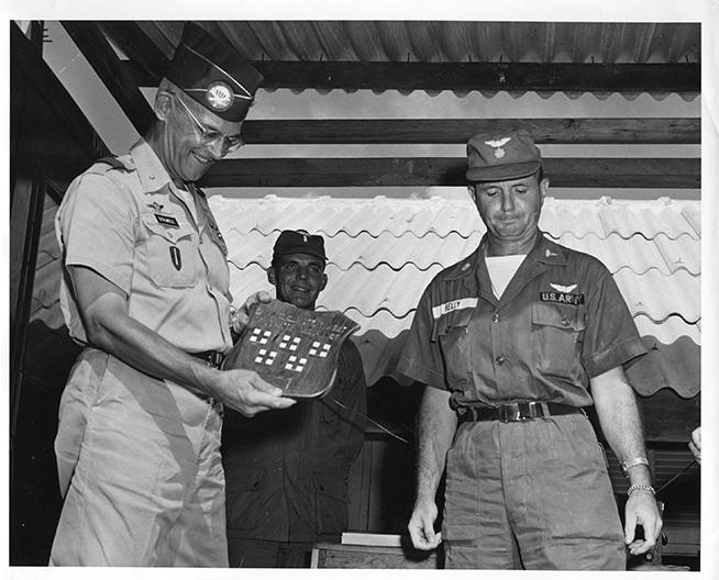 The men of the 134th Med. Det, Soc Trang, Vietnam presented Brig. Gen Joseph W. Stillwell with a plaque upon his leaving, Vietnam.