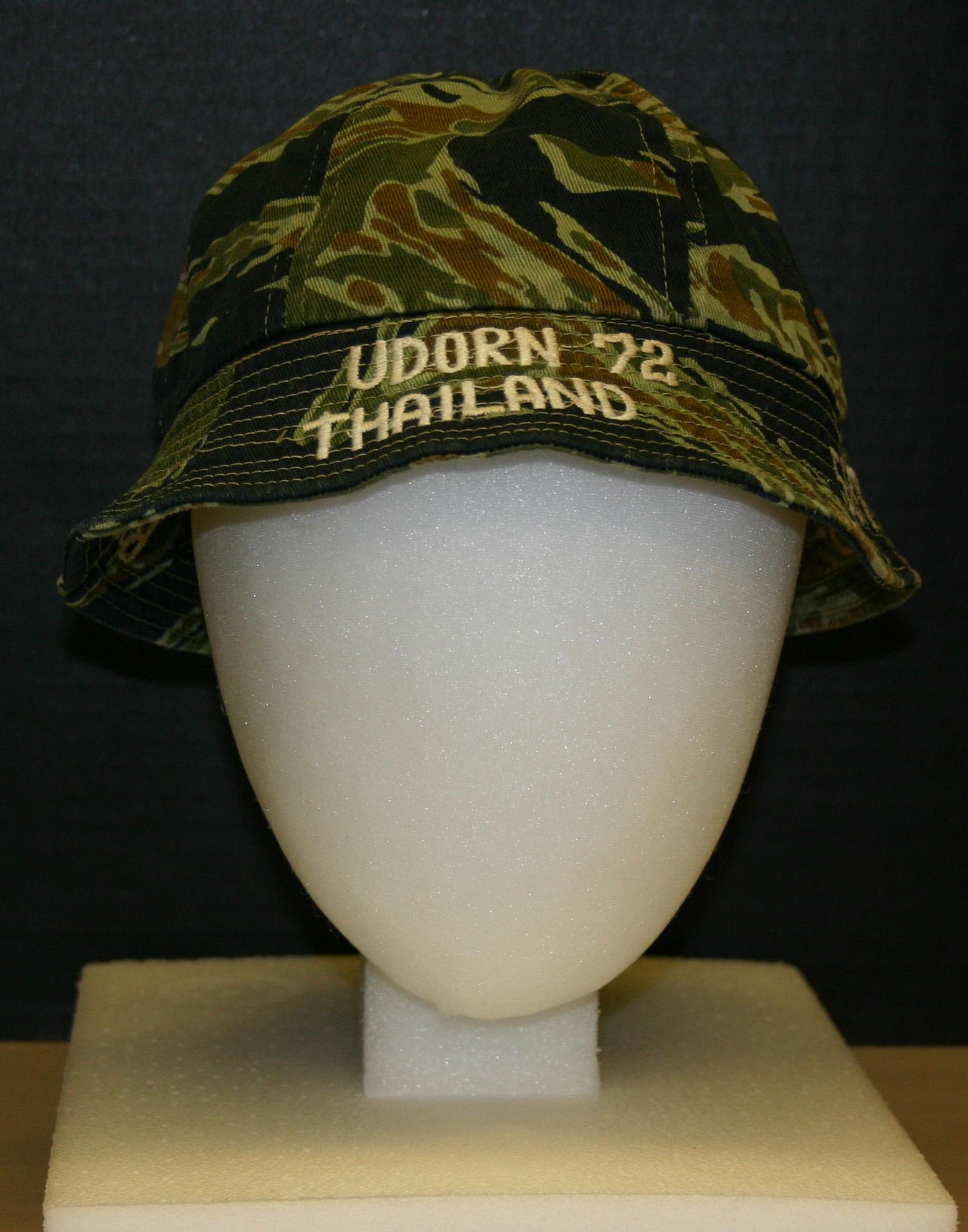 Non-regulation camouflage hat embroidered with the words 'VIRGINIA' 'BOB' 'UDORN THAILAND 72' '58 TFS'