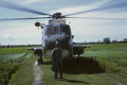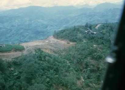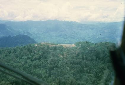 21st SOS CH-3E's hauling fuel to Tacan Site (channel 113) located in mountain above Lima-20A (Long Tieng) which can be seen in background