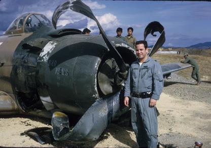 Taken during the mission to the PDJ site where a 56th SOW A-I, #TS 609, crash landed after his engine was disabled by ground fire. The mission is described as 'Bad news on the PDJ' in the attached 'Knife Tales'.
