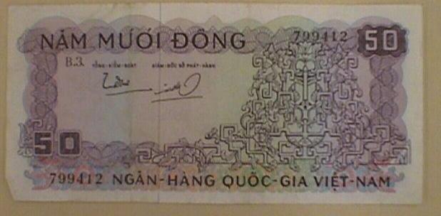 50 Dong bill (pre-liberation), 725museum0572. No Date, Ted Acheson Collection, Vietnam Center and Sam Johnson Vietnam Archive, Texas Tech University, https://www.vietnam.ttu.edu/virtualarchive/items.php?item=725museum0572, Accessed 12 Apr 2026.