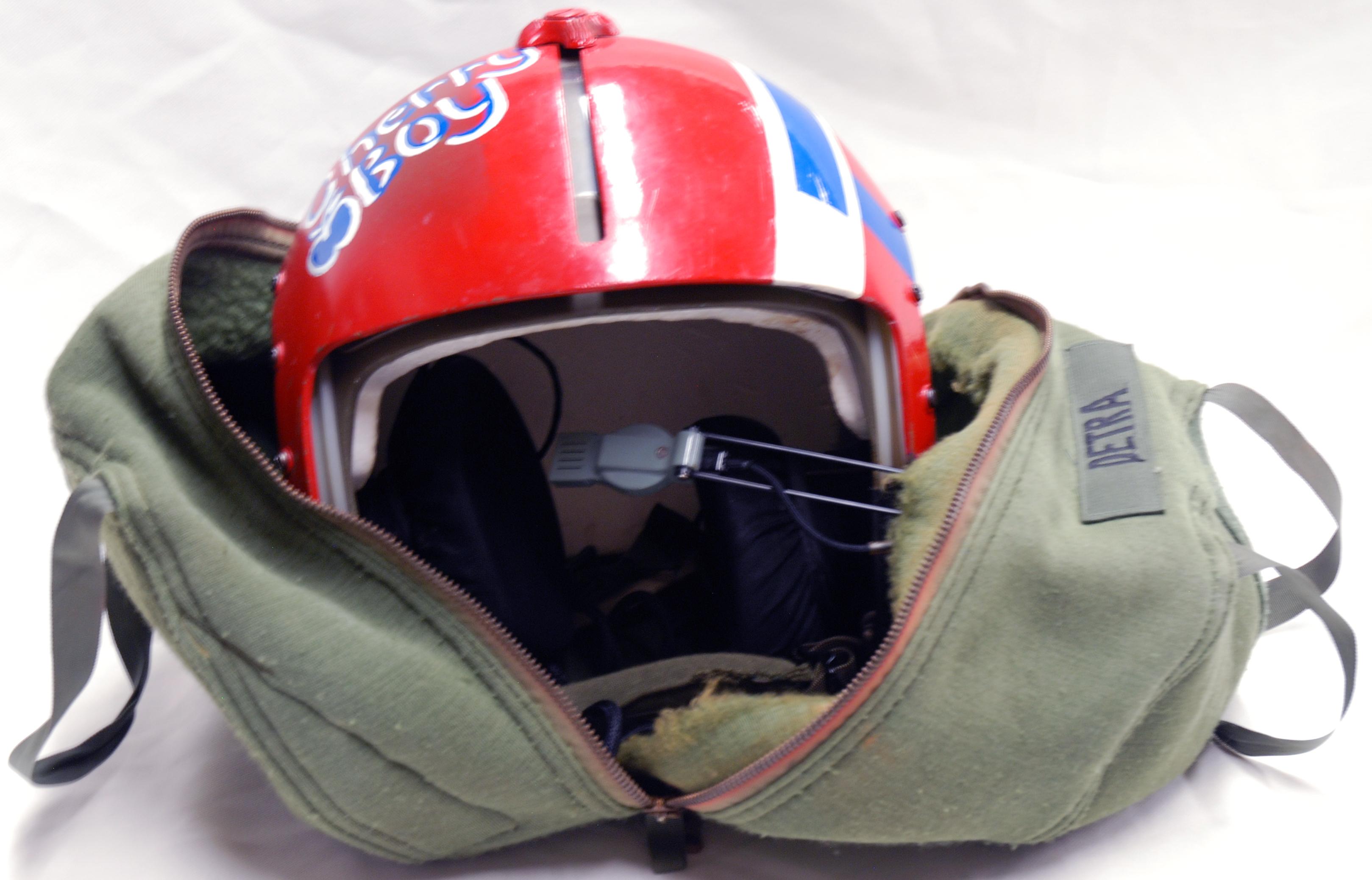 Flight helmet decorated with 'Cherry Boy' in carrying bag, 069museum5012. No Date, Richard (Dick) Detra Collection, Vietnam Center and Sam Johnson Vietnam Archive, Texas Tech University, https://www.vietnam.ttu.edu/virtualarchive/items.php?item=069museum5012, Accessed 27 Jan 2026.