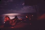 Two USMC CH-46s making night takeoff from LPH-10 USS Tripoli